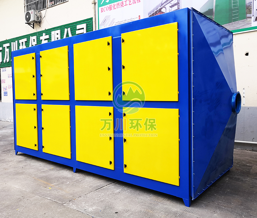 橡膠廢氣從管道進(jìn)入到設(shè)備內(nèi),穿過(guò)第一層噴淋層,用水沖洗廢氣,再進(jìn)入到第二、第三層填料層,去除水溶性的粉塵和廢氣,最后進(jìn)入到活性炭吸附層,利用活性炭的吸附力,吸附有機(jī)廢氣,達(dá)到凈化的效果。