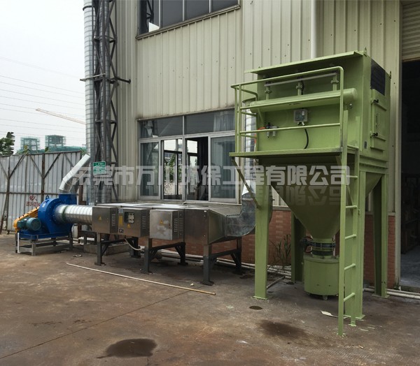 華工公司需要處理的污染物是有機(jī)廢氣和塑料粉塵,塑料粉塵的特點(diǎn)是顆粒大,自重大。根據(jù)華工公司的實(shí)際情況和以往的相關(guān)工程經(jīng)驗(yàn),我們工程師采用了“脈沖濾筒除塵器+UV光解凈化器處理”這套工藝。